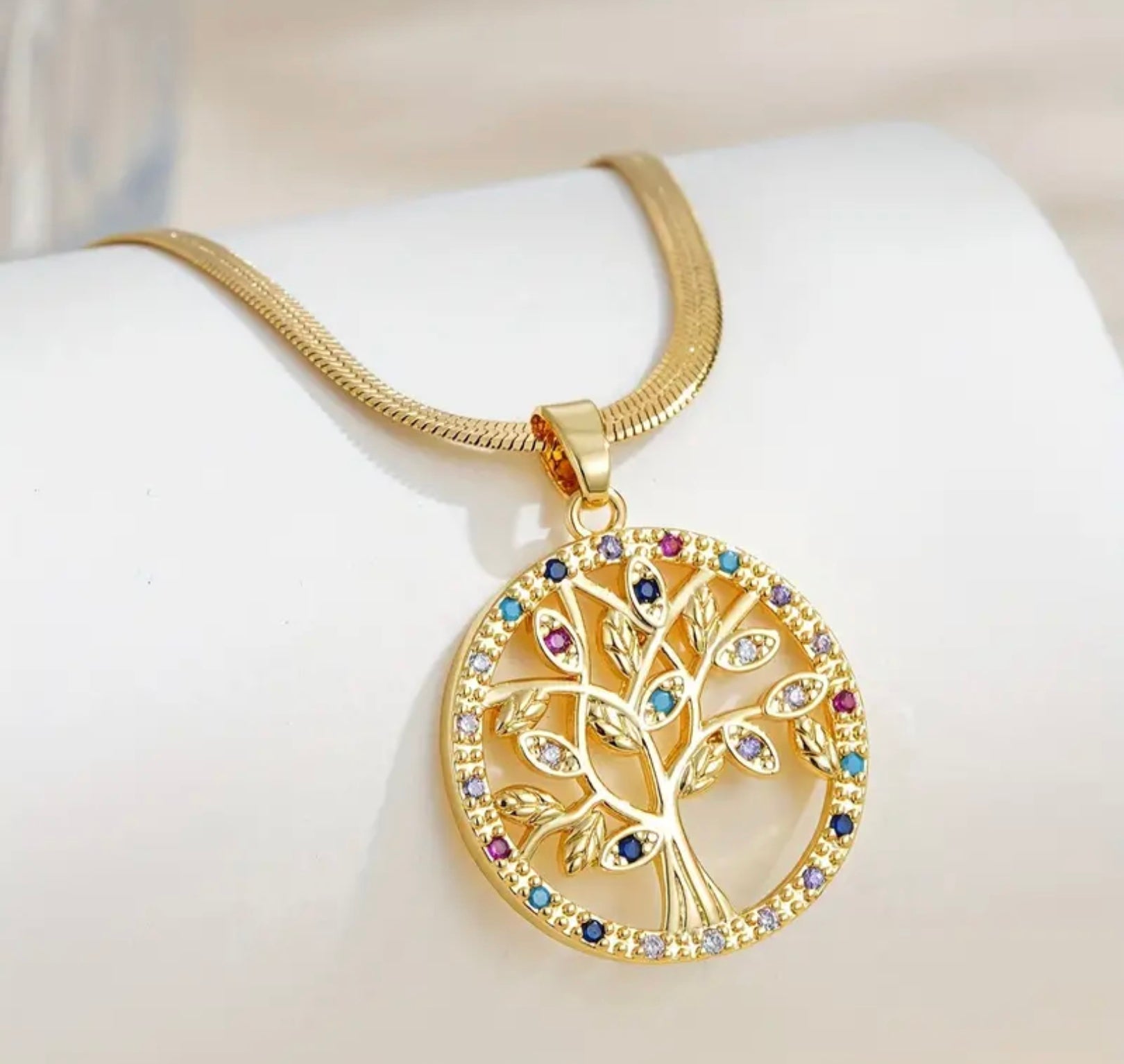 Tree Daisy Pendant Necklace with Colorful Copper Inlaid Zirconium and Small Design Sense
