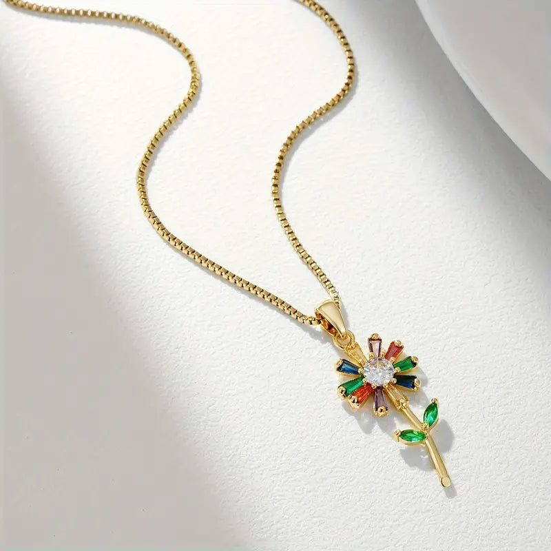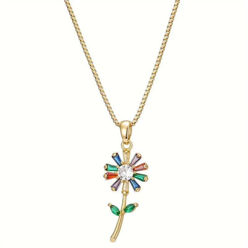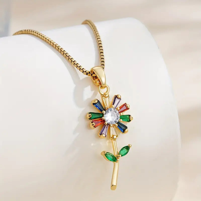 Sunflower Daisy Pendant Necklace with Colorful Copper Inlaid Zirconium and Small Design Sense
