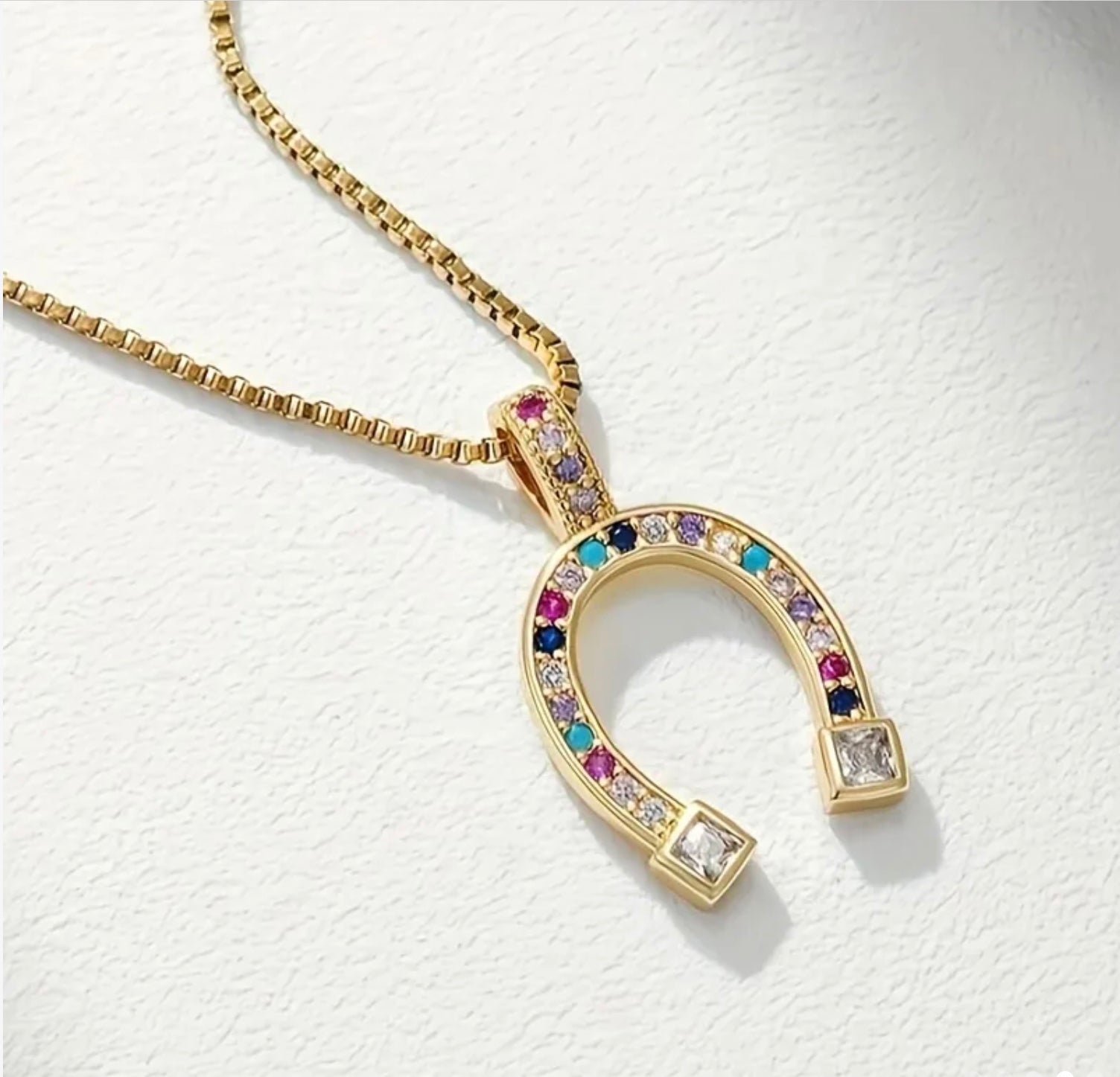Horseshoe Necklace with Colorful Zirconium and Small Design Sense
